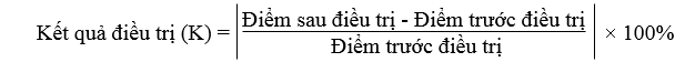 - Đánh giá hiệu quả điều trị trên lâm sàng: bằng thang điểm quy đổi tổng hợp từ các chỉ số gồm mức độ đau theo thang điểm VAS, khả năng vận động khớp gối theo thang điểm WOMAC và tầm vận động khớp gối theo phương pháp Zero tai các thời điểm trước và sau điều trị theo công thức:
