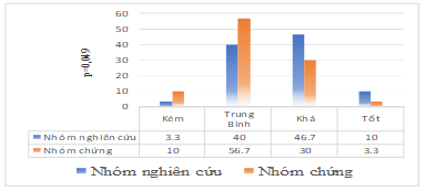 Qua số liệu nghiên cứu của chúng tôi, sự cải thiện về mức độ co cứng theo Ashworth như sau: nhóm nghiên cứu có tỉ lệ tiến triển cao nhất là mức trung bình chiếm 63,33%, kém chiếm 30% và khá 6,67%, trong khi đó nhóm chứng có mức trung bình là 60% và kém là 40% cả hai nhóm đều không có mức tiến triển tốt, sự khác biệt có ý nghĩa thống kế với p < 0,05.